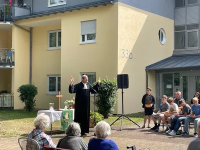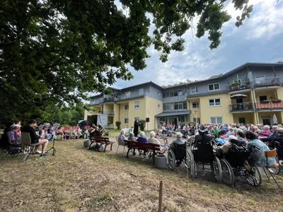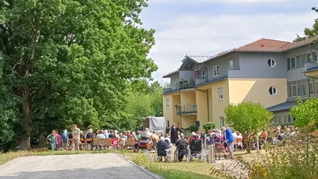 Für das Setting konnten Sie sich keinen besseren Platz aussuchen: Die Grünfläche vor dem betreuten Wohnen.