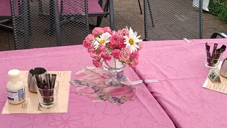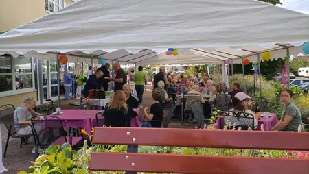 Im Anschluss lud das Kirchencafé erstmals zum Beisammensein im Grünen ein. Auf dem Vorplatz des „Café G´mütlich“ war unter einem Festzelt gegen die Sonne wunderschön dekoriert.