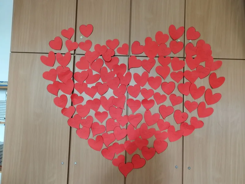 Die schon bekannten Herzen aus dem Eröffnungsgottesdienst hatten heute ihren besonderen Auftritt: Bewusst nicht nach Gemeinden sortiert, bildeten alle gemeinsam EIN großes Herz.