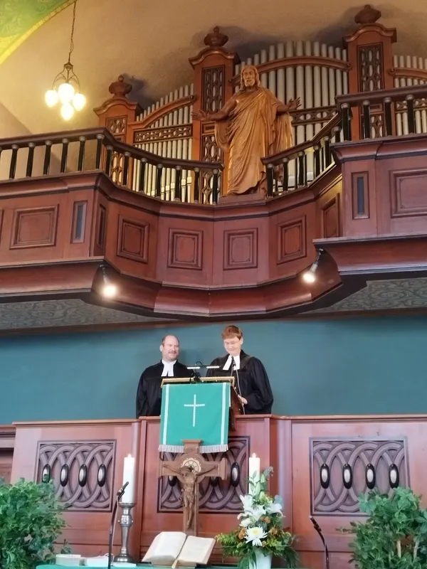 Da Essen bekanntermaßen Leib und Seele zusammen hält, ging es im Anschluss an diesen außergewöhnlichen Gottesdienst, rüber ins Gemeindehaus zum Sektempfang.