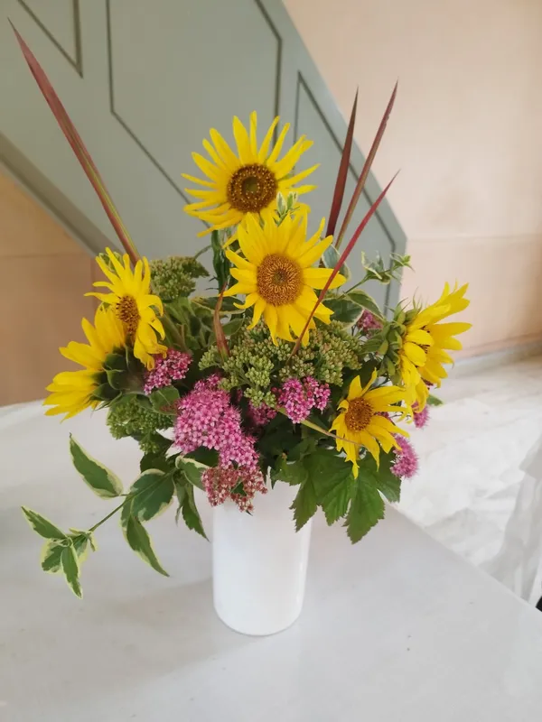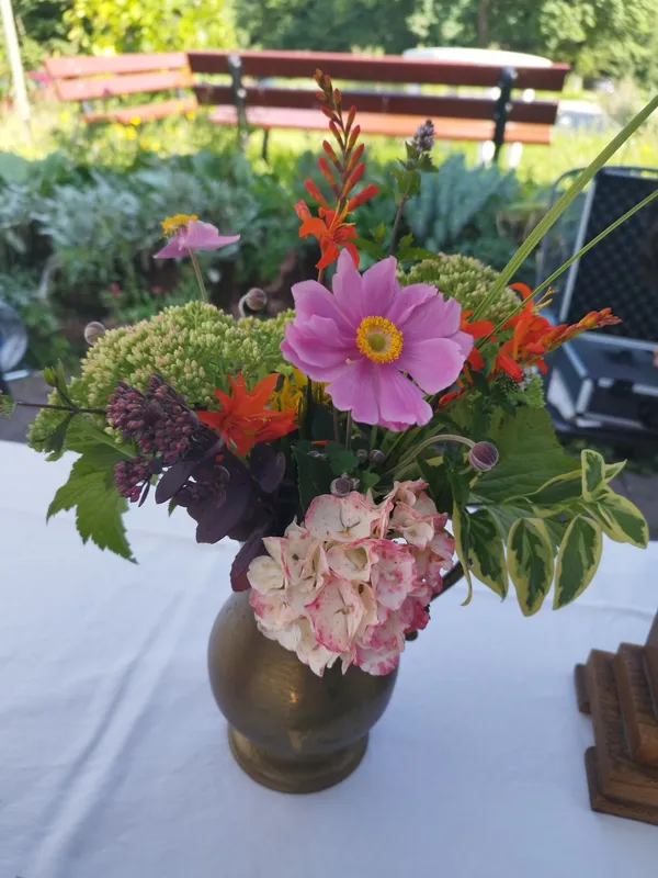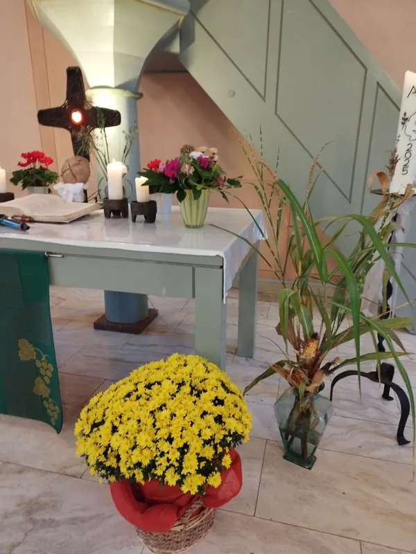 Jeden Sonntag erstrahlt unser Altar, und oft auch das Drumherum, in bunter Blumenpracht.