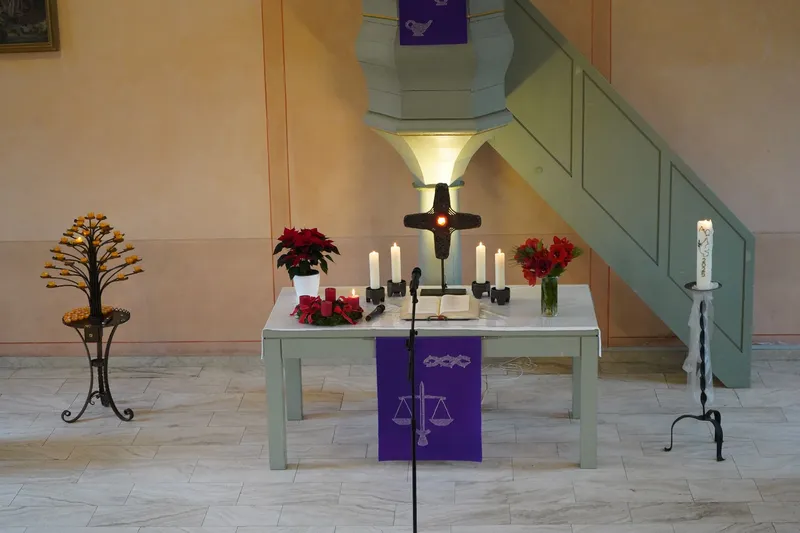 Zusammen feierten Petra Reiß und Michael Roth-Landzettel einen fröhlichen Gottesdienst, der uns daran erinnerte, dass wir für einander brennen sollen. Mit dem Brennen etwas schwer, tat sich allerdings die erste Kerze am Adventskranz. Aber auch diese Startschwierigkeiten ließen sich schnell beheben.