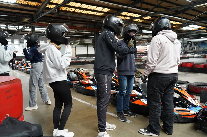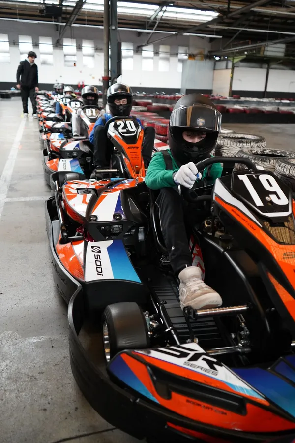 Auf der Kartbahn ging es turbulent zu, beim Ausflug der Jugendgruppe.