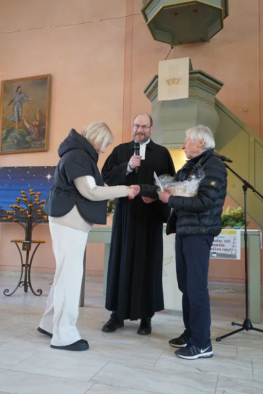 Für seinen langjährigen Einsatz wurde ihm im Gottesdienst mit einem kleinen Päsent gedankt.