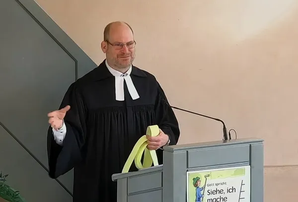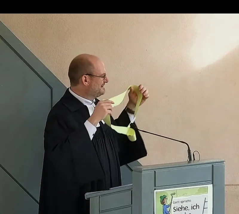 In seiner Predigt griff Michael das Thema Gemeinschaft auf. Denn unsere Konfis sind das letzte Jahr zu einer tollen Gemeinschaft zusammen gewachsen. Als Symbol wählte er ein "Möbiusband". Dessen faszinierende Eigenschaften passen nicht nur zu unserer Gemeinschaft untereinander, sondern auch perfekt zu unserer Gemeinschaft mit Gott.