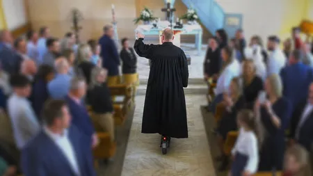 Also konnten die Konfirmanden hinter ihrem, Roller fahrenden, Pfarrer feierlich in die brechend volle Kirche einziehen.